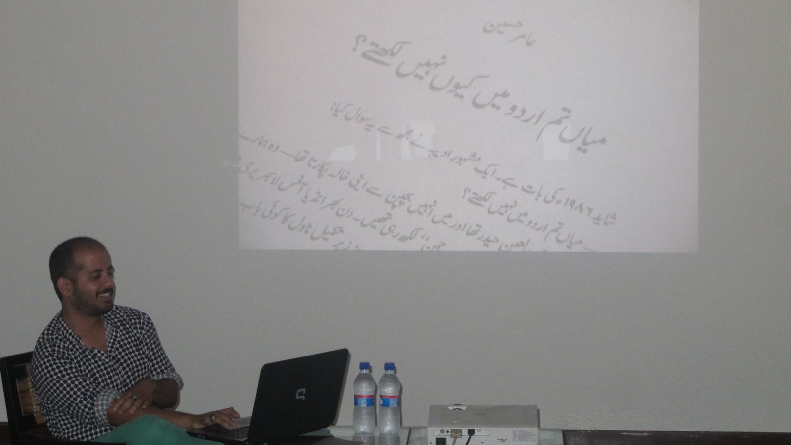 Fazal Rizvi was the 2014 resident artist at the Gasworks Residency in London. The Gasworks Residency in London is funded by the British Council and The Charles Wallace Pakistan Trust, as well as being supported by Vasl Artists’ Collective. Fazal Rizvi shared his work and experiences from The Gasworks Residency in May 2015 at the Indus Valley School of Art & Architecture’s Gallery. Rizvi presented a selection of images from his residency studio and his continuing work in London. Exploring the connotations of the term a ‘second generation immigrant’, Rizvi showed a number of Internet memes and gifs that had overtly comical themes. By imposing text upon these images, he highlighted issues of cross-cultural identities.