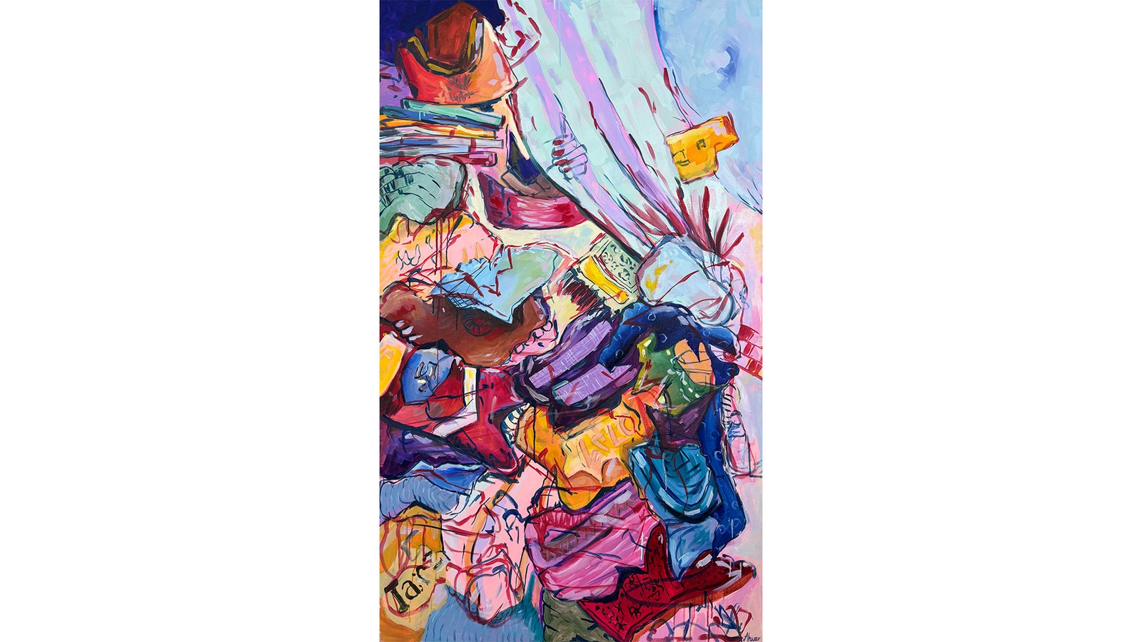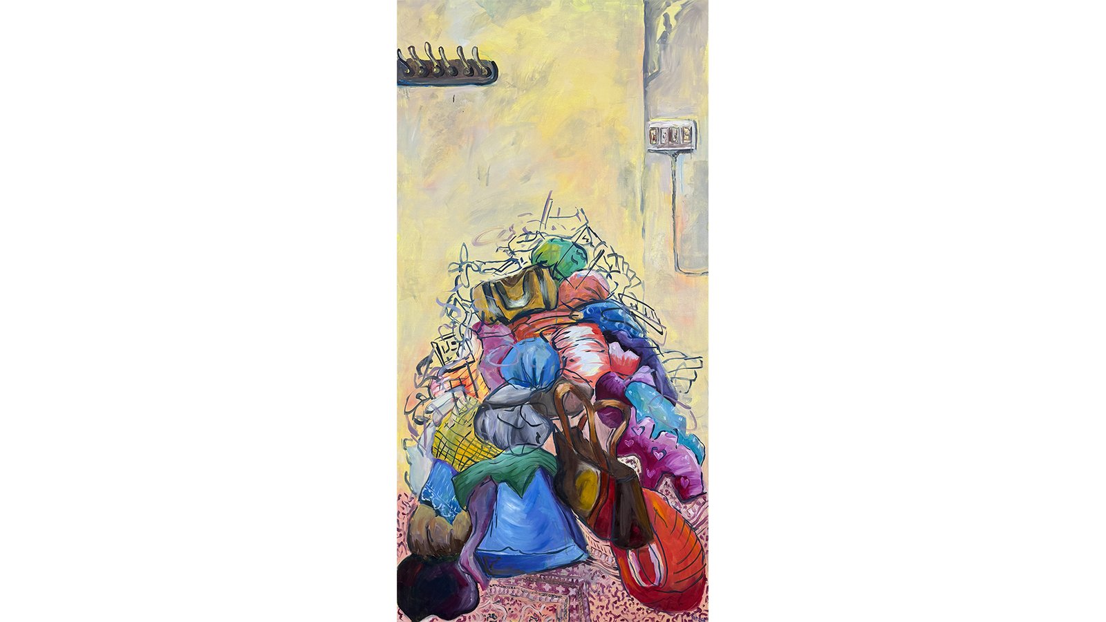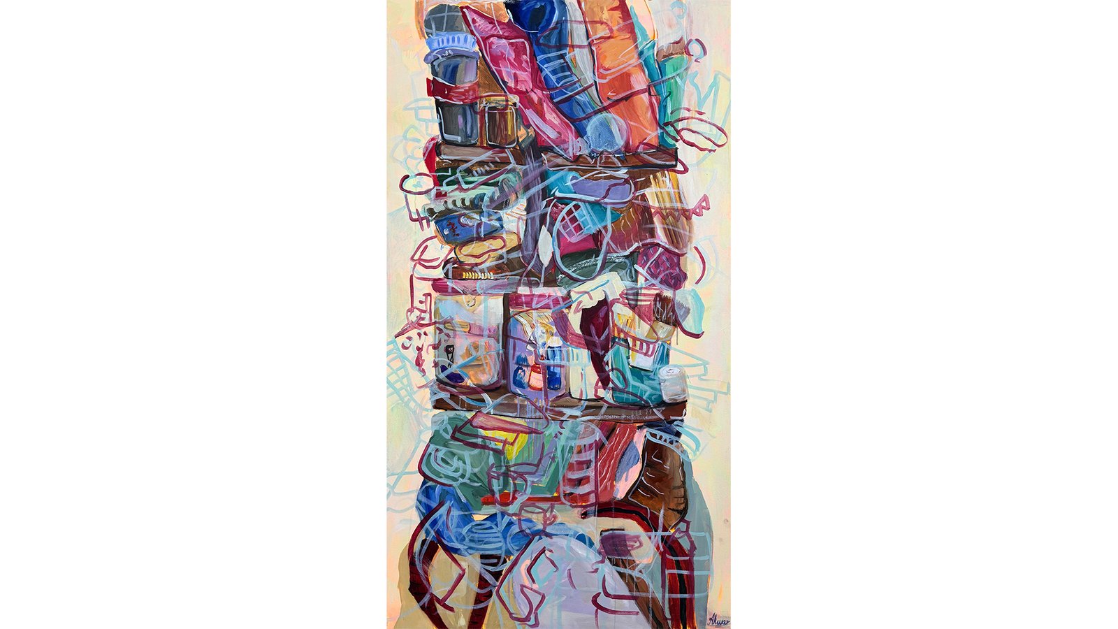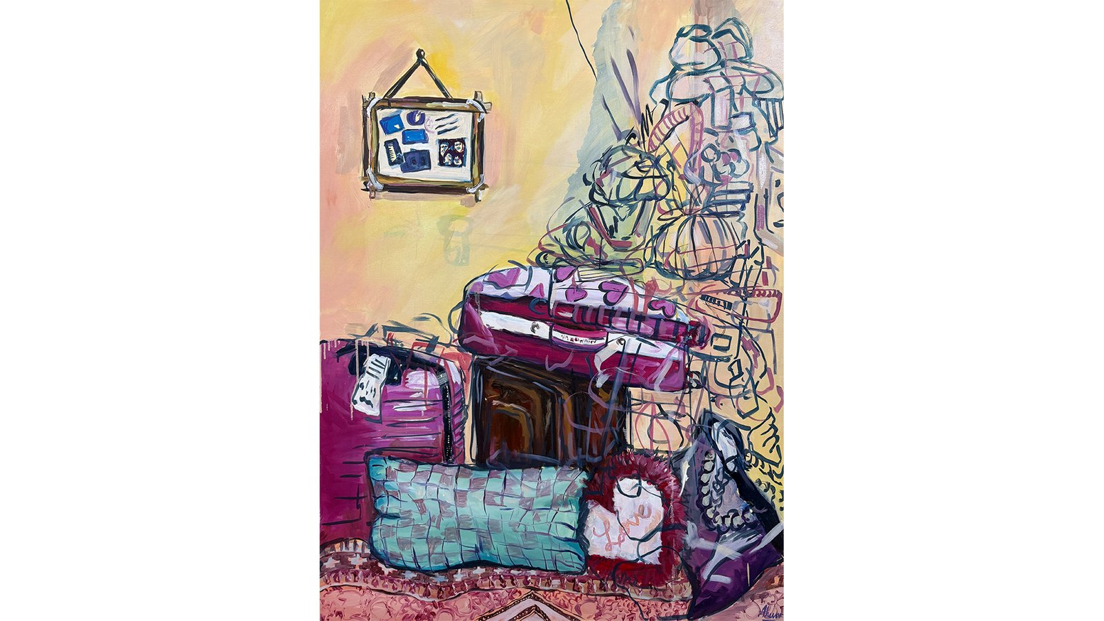 Ahwar Nasir is a multidisciplinary artist and art educator. She graduated from the Indus Valley School of Art and Architecture with a Bachelor’s in Fine Arts. Her art practice expands across painting, drawing, and embroidery, exploring themes of home and displacement. Drawing from her own nomadic life, Ahwar transforms her memories into tactile and visual narratives. She skillfully uses embroidery and drawings to reflect the domestic chaos and fleeting moments that shape her sense of belonging. Nasir experienced constant relocation, leaving fragmented memories of various homes. Growing up amidst her grandfather’s textile business, she developed a fascination with fabrics, particularly muslin’s fragility and translucency, symbolizing her transient memories. Through embroidery she captures the comforts and confusions of her nomadic experiences. Precise fabric cuts juxtapose with spontaneous drawings, imposing order on chaos, reflecting her quest for stability amidst constant change.