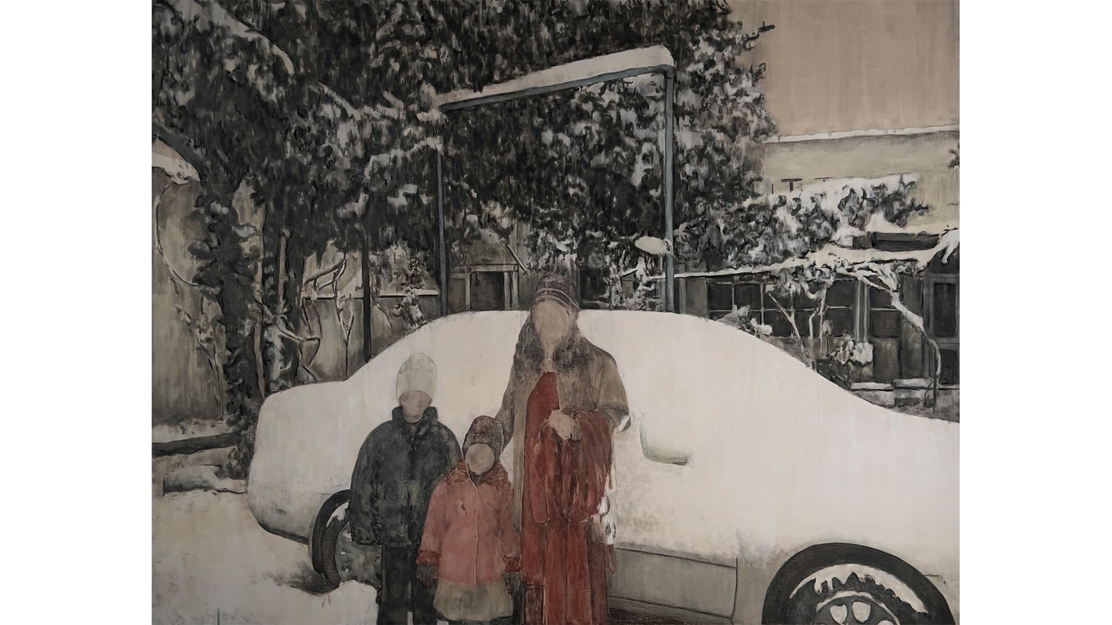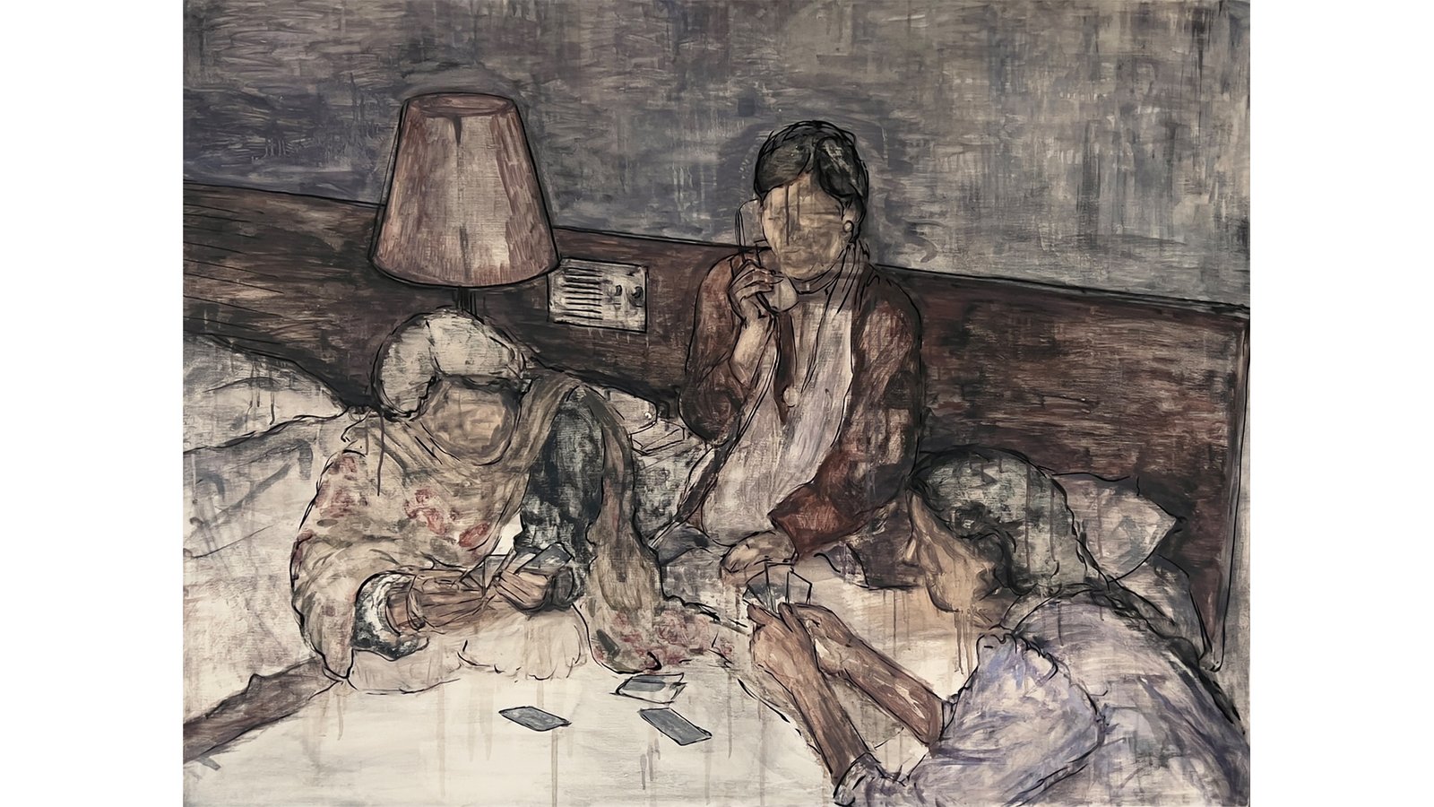 Her practice revolves around memory, process, and materiality. Working primarily with oil paints and charcoal, she engages in an intuitive process of layering, erasing, and reworking. Drawing from old family photographs of herself, her parents, friends, and familiar spaces, her work becomes a way of tracing where she comes from and how those histories shape identity. These photographs act as both personal and collective archives, holding stories that transform as they pass through her painterly process.
