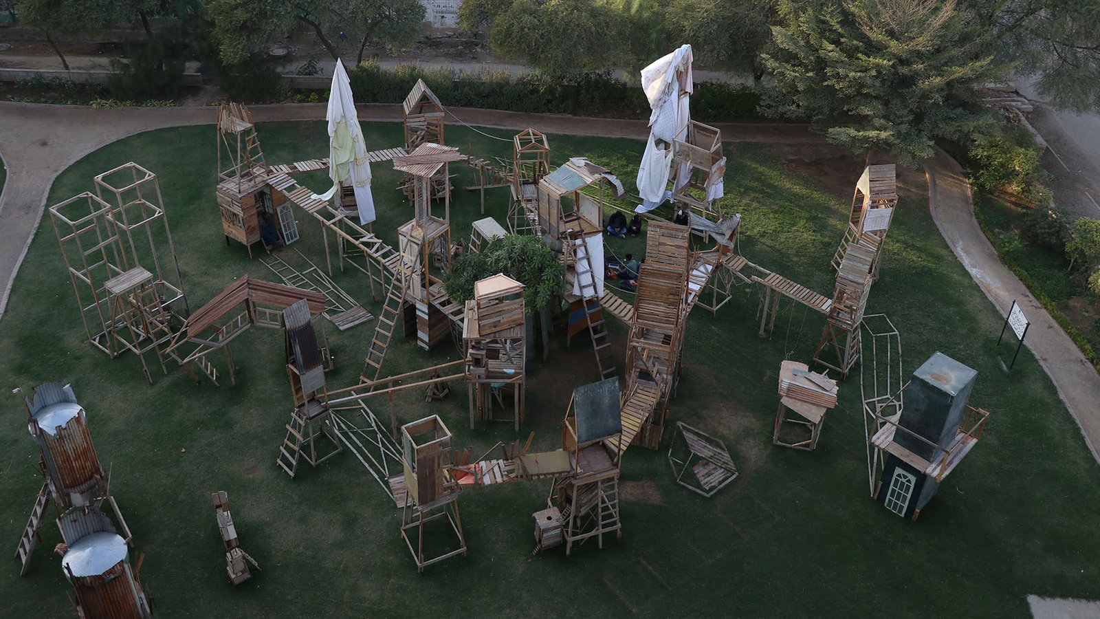 Lujane Vaqar Pagganwala is a multidisciplinary artist, with a profound affinity towards towers, structures, ladders and the like. She investigates the phenomenology of space, as an idea and as a physical entity. Pagganwala takes inspiration from childhood spaces as well as urban topographies to create hybrid realities. These spaces are playful, layered and confrontational. She explores abstract existences on multiple spatio-temporal planes at once, and our omnipresent transience across these spaces. How might one elucidate the study of Entanglement within and in relation to the discourse of the Self?