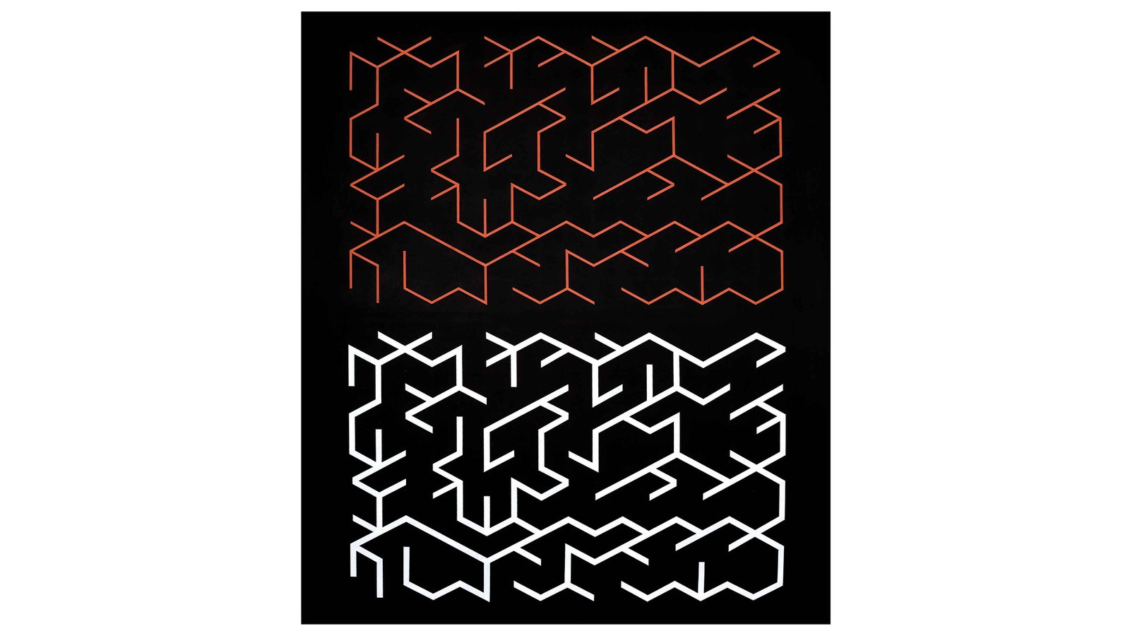 Mohammad Ali Talpur (b.1976) was born in the Sindh region of Pakistan before moving to Lahore where he studied at the prestigious National College of Arts (NCA). Throughout his career his focus has been calligraphy, language, abstraction and minimalism. Taken at face value the lines in Talpur’s work possess an optical quality, restricted to a palette of black and white, a reference to the printed page of a book. The combination of line and colour discombobulates the eye, causing the viewer to see flashes of colour and movement within the monochrome canvases.