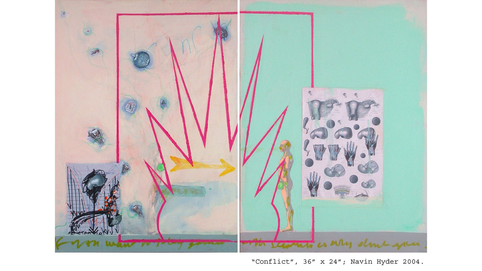 Navin Hyder is a visual artist who trained as a painter and a miniaturist. She was awarded a BFA from Indus Valley School of Art and Architecture, Karachi in 2000 where she continued as faculty in the Department of Fine Arts. At the same time she exhibited in numerous group and solo shows nationally and some of the work produced between 2000 and 2004 was acquired by the Devi Art Foundation in India. She was also awarded the Gasworks Artists Residency in 2005.