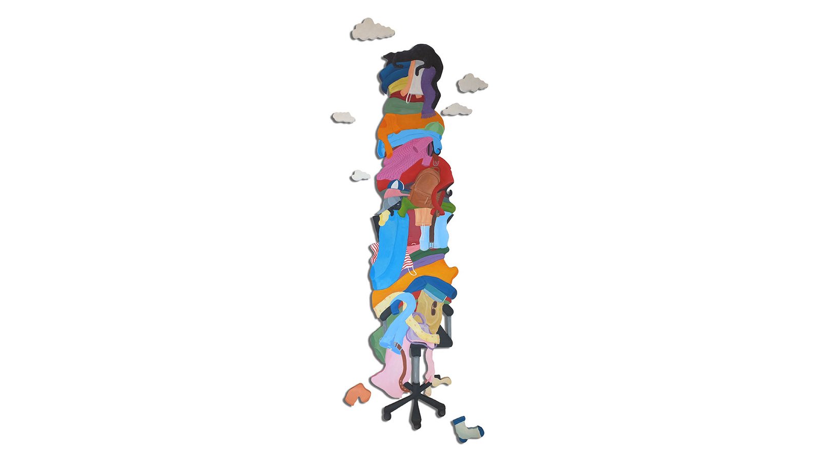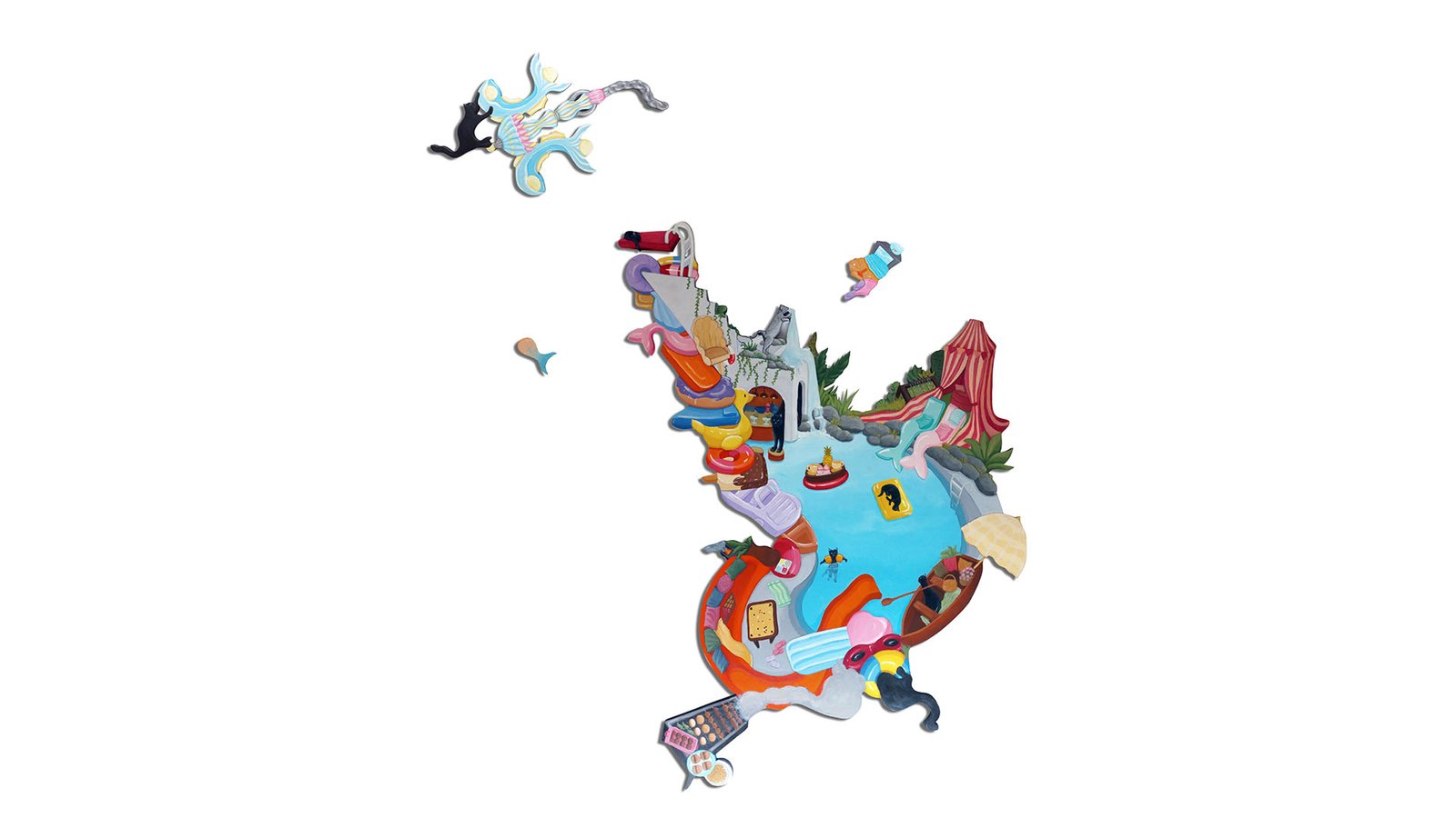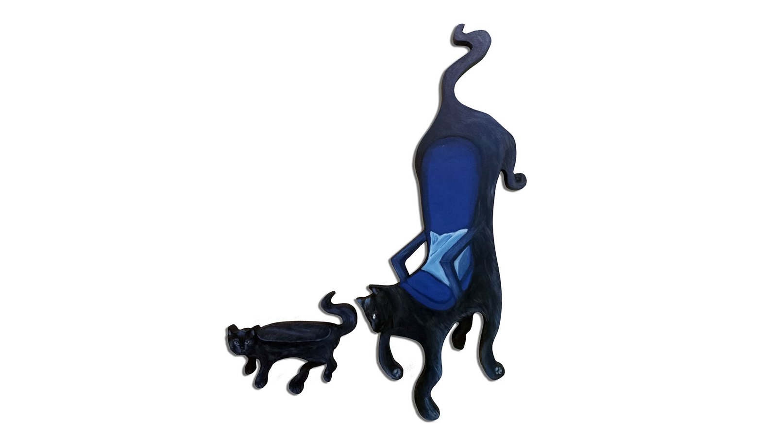 Schajya looks at her home and immediate surroundings as a main source of inspiration for her compositions. Her pieces follow a continuous narrative through the ‘black cat’ that is seen exploring the spaces within the paintings.