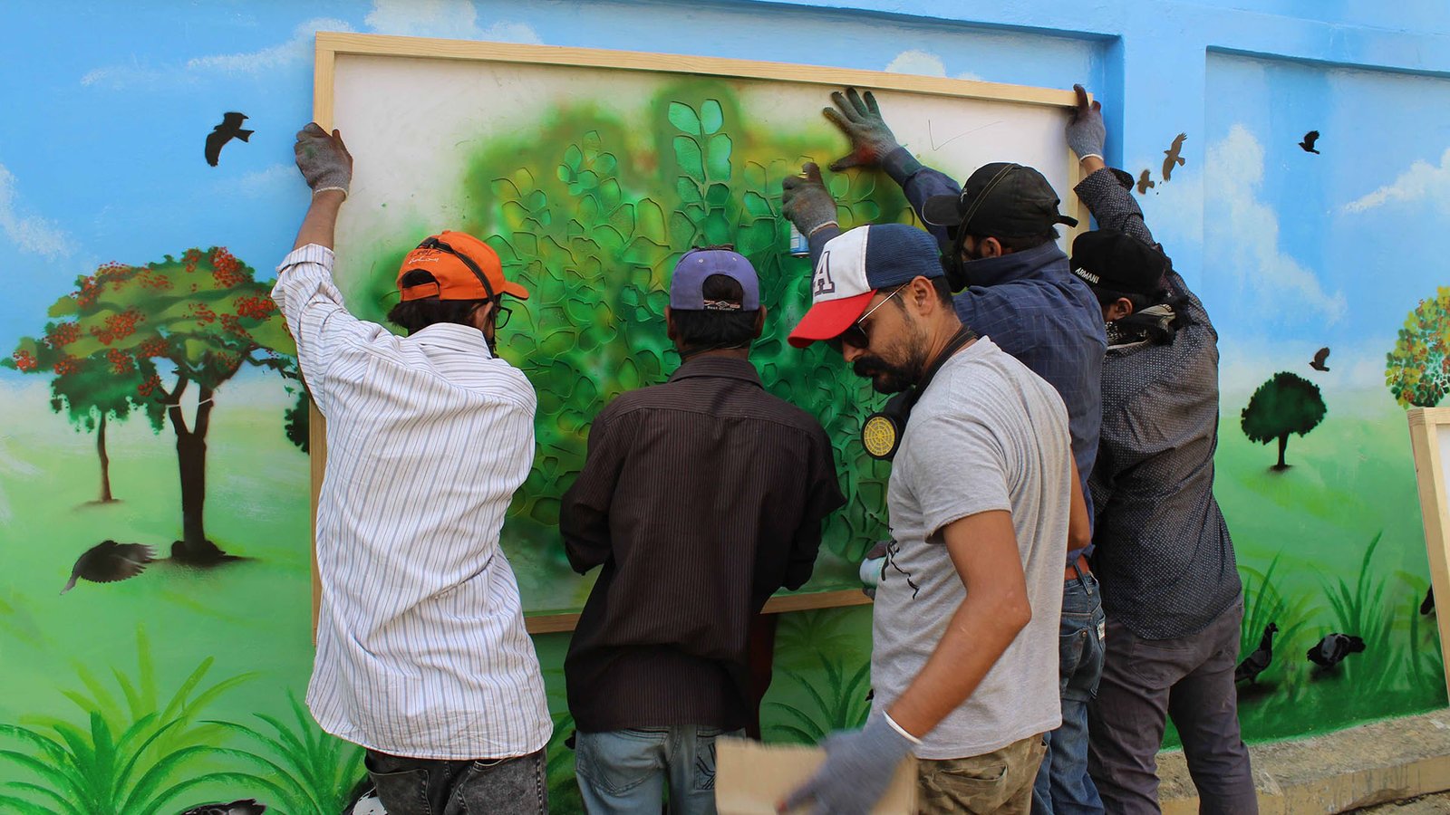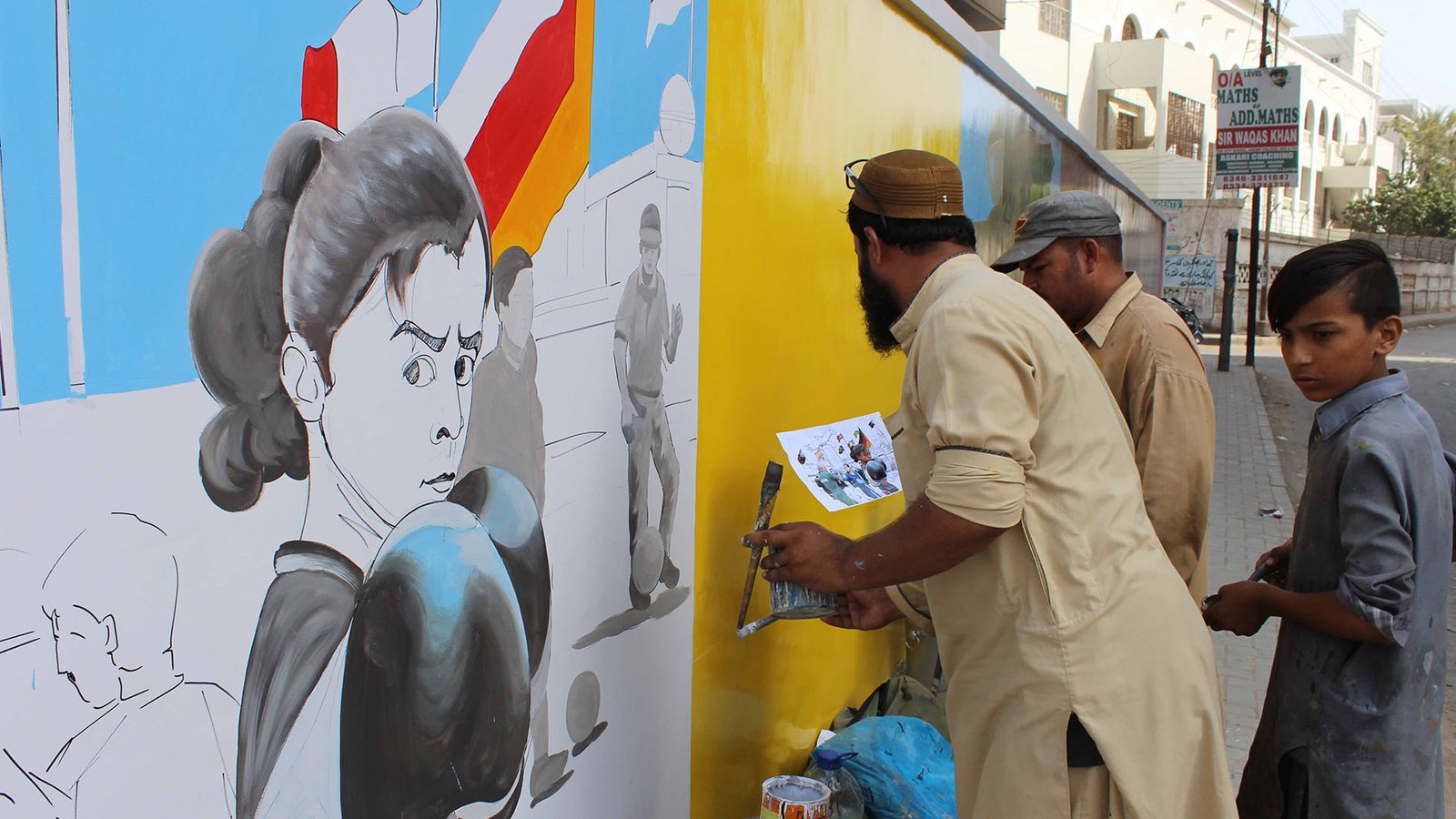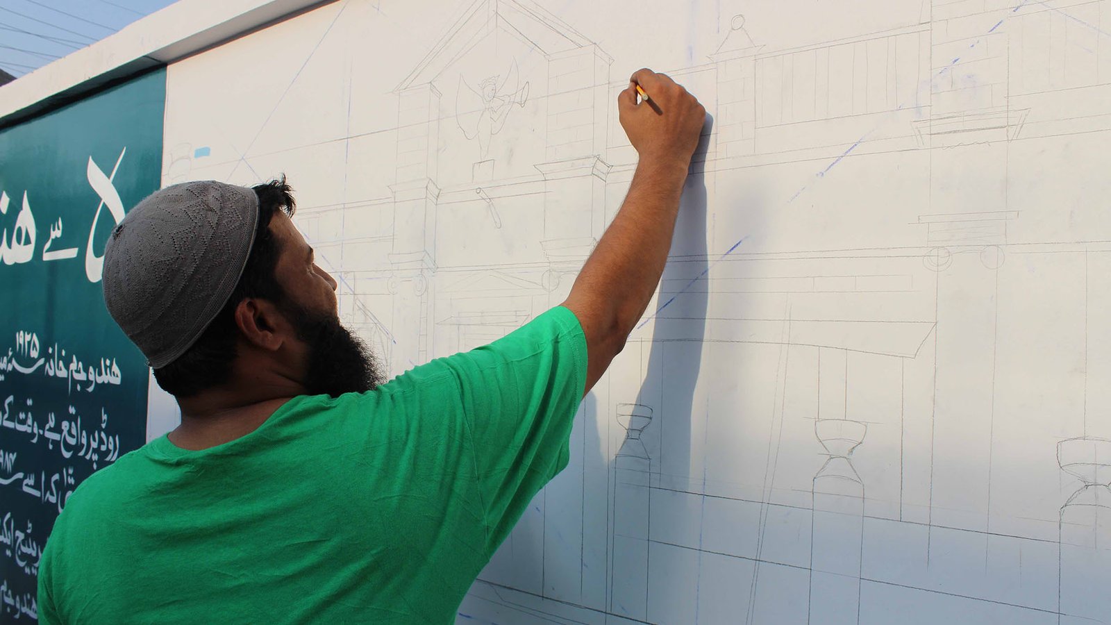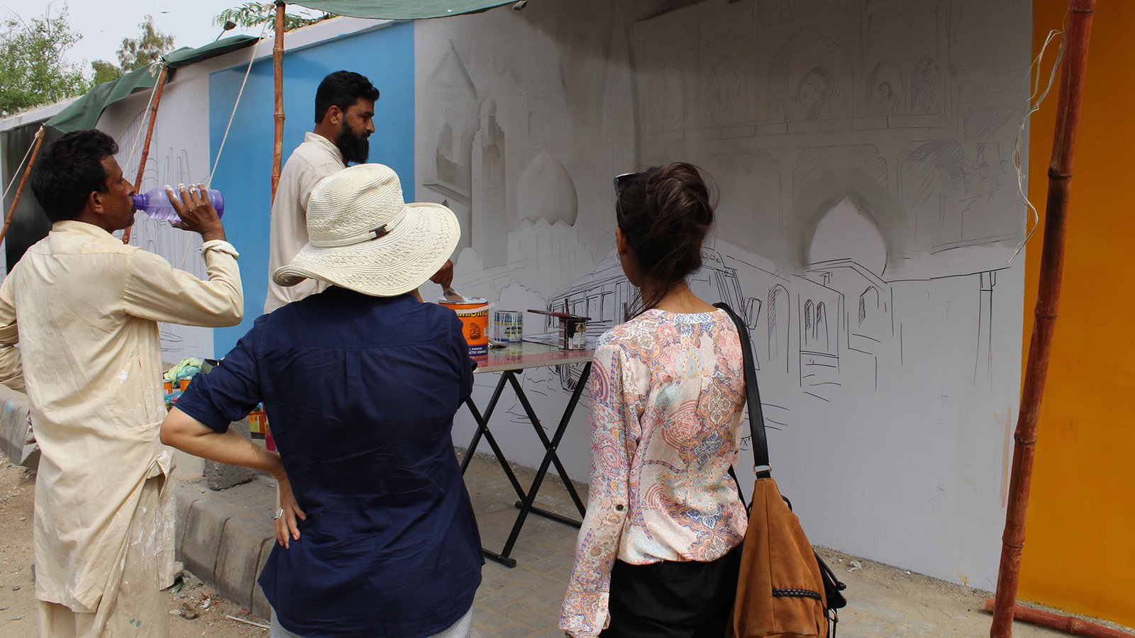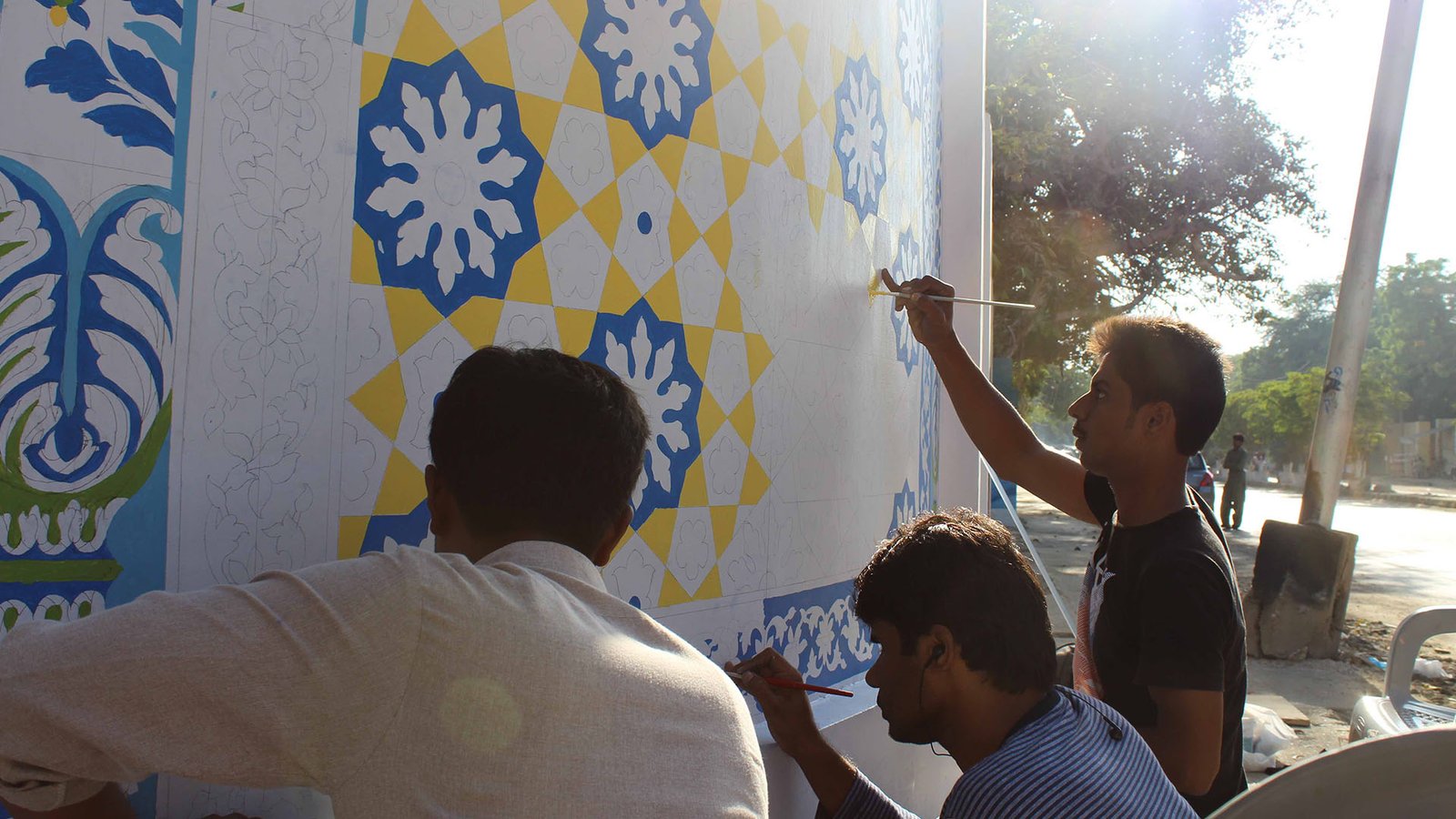 When Vasl was approached by IAK to facilitate the Walls of Peace campaign in January 2016, the challenge was to design themes and imagery that could resonate a sense of pride among citizens from all walks of life. This project reflected a true collaborative spirit as Vasl and IAK worked together to design and paint a total of 286 walls across Karachi in a span of six months. The many steps from concept to execution required collaborations with local artists and artisans, clean up and repairs, public input and administrative support from government bodies. The Vasl team designed wall murals that were inspired by Karachi’s street vendors, heritage monuments, it’s history, cultural diversity and it’s environmental ecology. The process of painting these walls generated job opportunites for artisans and craftsmen and reinforced a sense of ownership, communal pride and civic responsibility in the nearby businesses, schools, vendors and residents. The public excitement and interest that was generated by this imagery on the walls gave a boostful encouragement to all involved.