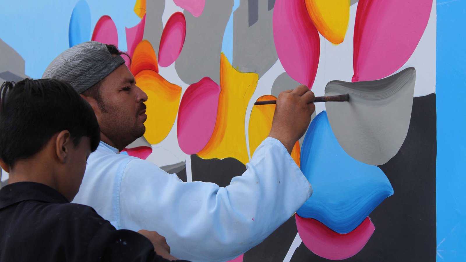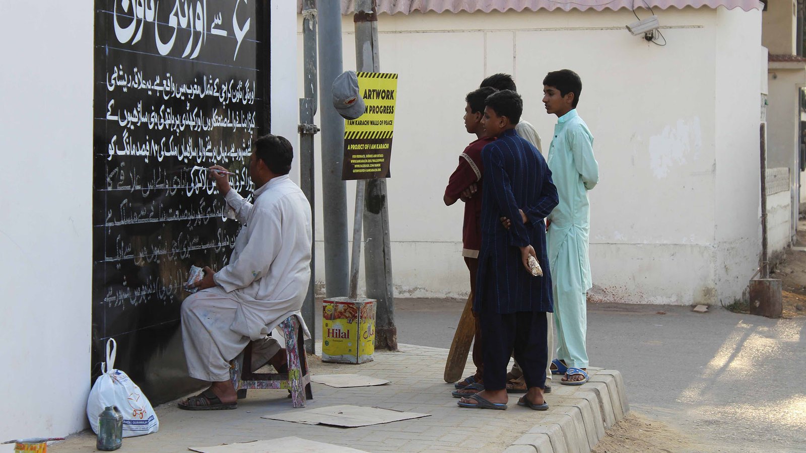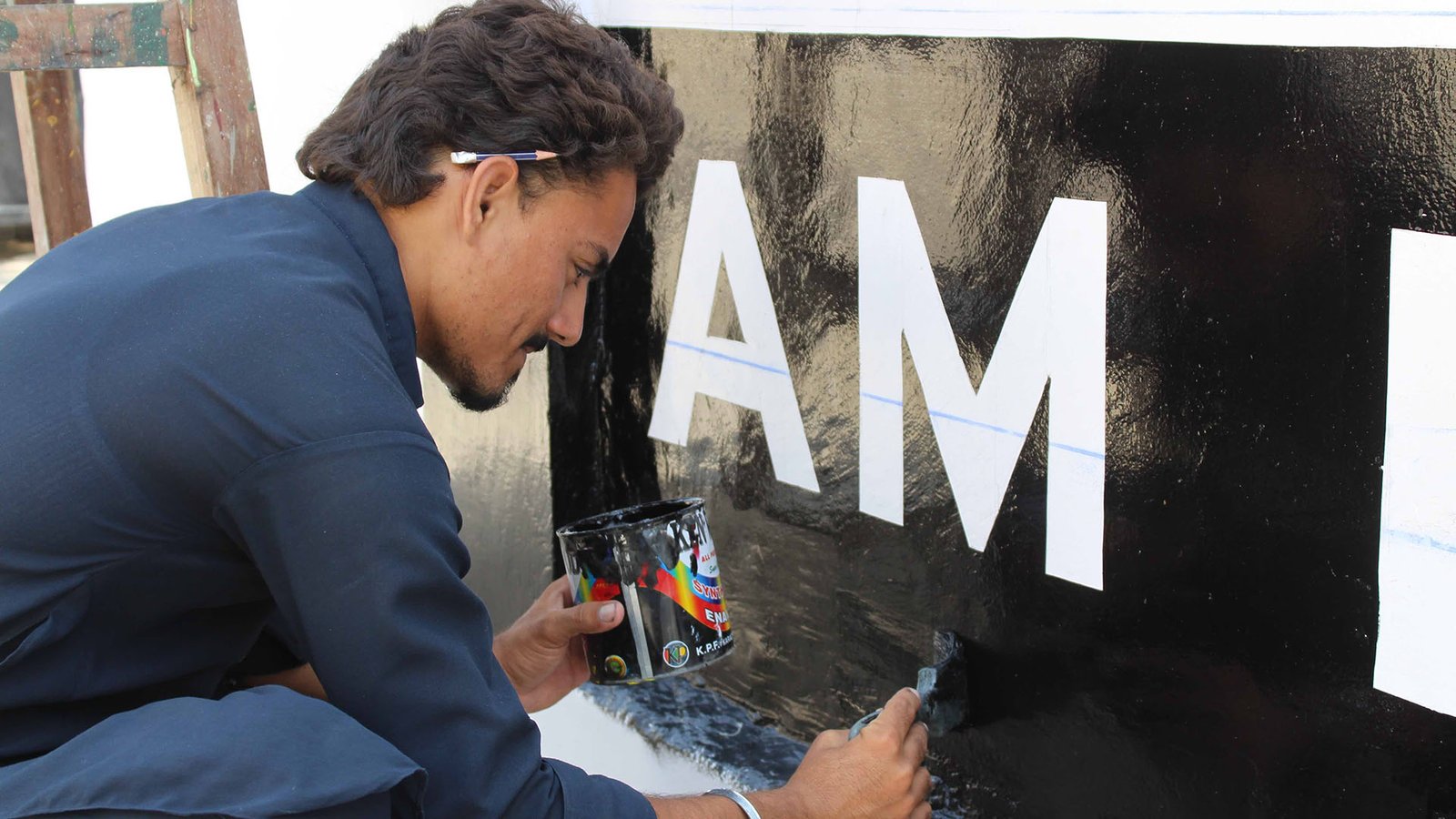 The IAK Walls of Peace campaign was initiated by I AM KARACHI (IAK) to enable the people of Karachi to reimagine walls that have been covered by hate speech and negative graffiti into symbols of peace through artistic intervention. The Walls of Peace campaign was implemented by Vasl Artists’ Collective and supported by the Indus Valley School of Art and Architecture.