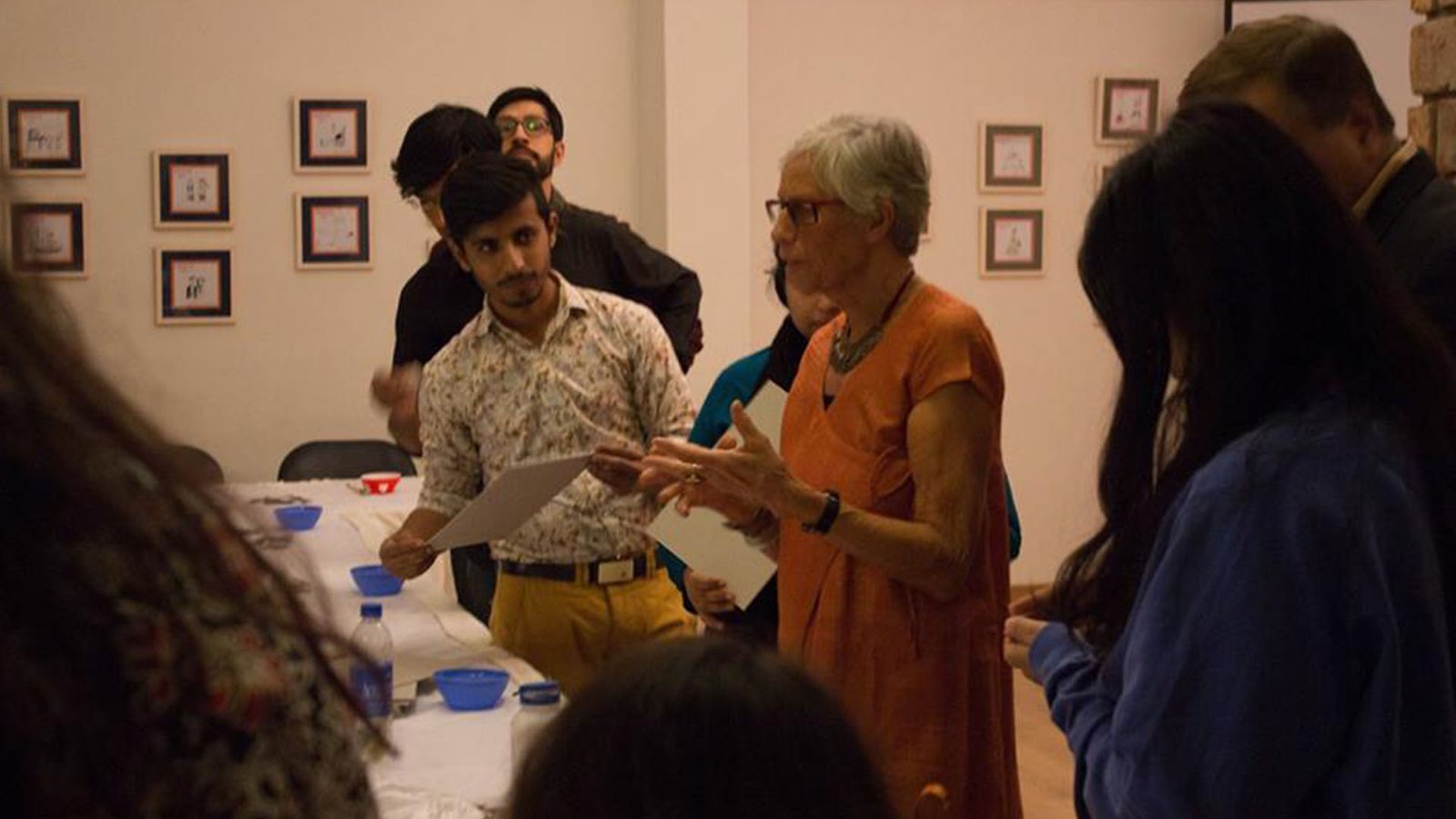 Benigna Chilla, visiting artist on behalf of the Goethe Institut- Pakistan deliveredan intriguing discussion, as well as a paper-relief workshop at T2F (The Second Floor) on February 8th, 2018. This workshop was organised and hosted by the Vasl Artist’s Association. Chilla begun her art training at the Academy of Fine Arts in Berlin, Germany where she originates from. In 1969, she moved to the USA where she completed her graduate studies. After which, she began a career as a Professor of Visual Arts till her retirement in 2011. Each fall season, Chilla teaches and conducts workshops to non-traditional art students settled in South Asia. Chilla continues to produce work in her private studio and has exhibited over forty solo exhibitions in the USA and internationally. This workshop began with Chilla sharing and discussing her work to the 20 participants. The presentation included various techniques she had employed in her body of work. She also referred to the careful selection and crafting of each pigment for the differing compositions of her paper-relief works. Chilla’s daughter helped in assisting her during the workshop. The workshop then started off with a demo, which lasted for two hours where the participants adapted to their own styles of creating paper relied compositions on a scale of 10”x10”. The works were brought together in the end which resulted in Chilla and the participants engaging in a constructive discussion regarding their practice of paper-relief and how they could continue it in their own personal styles.