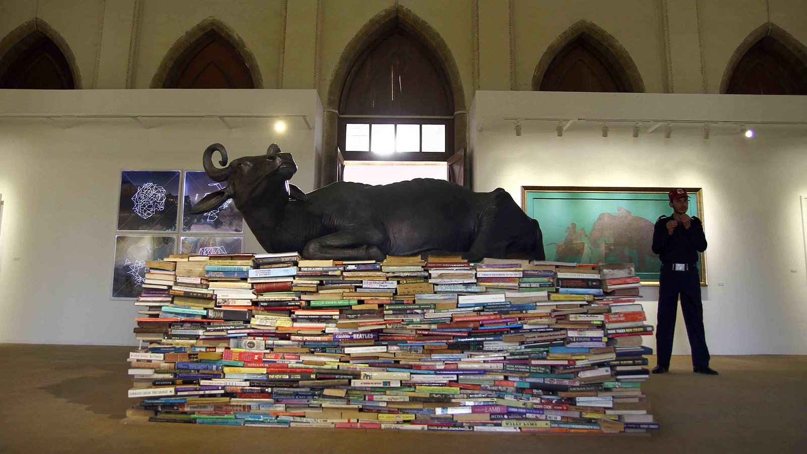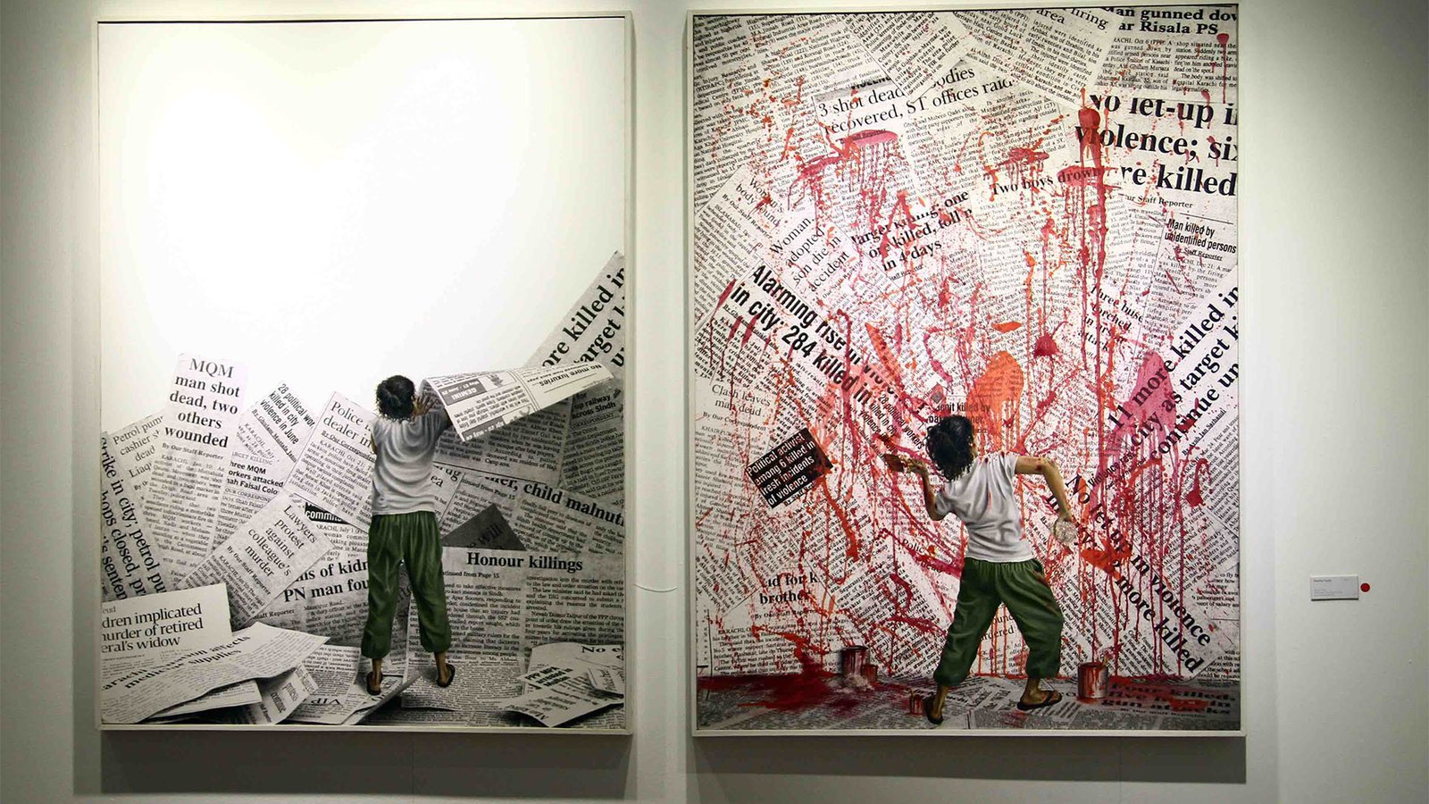 Art Fest 2014 was an exhibition of contemporary art by not only emerging but established artists from both rural and urban Sindh. The exhibition took place at the Frere Hall and its surrounding gardens in Karachi. Art Fest was part of the Sindh Festival, which was in collaboration with Vasl Artists’ Collective and the Canvas Gallery. It was supported in part by ArtNow. The Mohtarma Benazir Bhutto Collection was also exhibited simultaneously. It included works by the modern masters of Pakistan from Mohtarma Benazir Bhutto’s private collection.This show was unprecedented in the history of Sindh, in terms of the scale, magnitude and vision. Throughout the course of the festival, there were a spectacular variety of site-specific works, performances and a wide range of multi-media works, portrayed in both 2D and 3D. It was the first, major attempt by the establishment in Sindh to provide diverse art to the public and to vitalize the city’s cultural spaces. Frere Hall gave people access to art that remains confined to private homes and galleries.