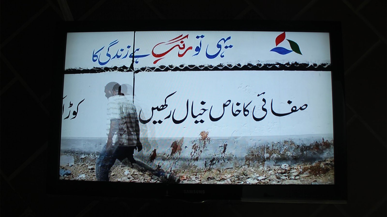 Shaheen Jaffarani observed the continuous cycle of decay in the city and engaged with the visual possibilities that it presented to an artist. Having grown up in Karachi, Shaheen was familiar with paan stained walls and littered streets – yet as an artist she saw these forms of decay as marks of individuals in an anonymous city. She laid out a sheet of canvas on the street which was eventually trodden over by people and vehicles, accumulating marks of dirt and movement – “small actions that reflect a bigger picture: the urban culture.”