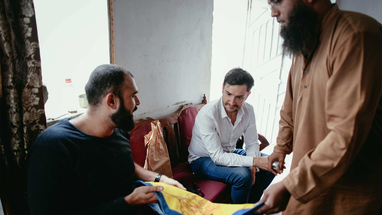 Upon his arrival in Karachi, Craemer was keen on creating awareness about the Baldia Factory Fire incident by producing work for a series of public exhibitions. Through constant exchange and interviews between the artist and members of the victims’ families, Cord of Desires was a visual testament to how social design can intervene with fashion and the visual arts. Hira Khan at Vasl assisted Craemer in recording and translating these interviews which became an integral part of his work, highlighting the tragic consequences of the fire which were borne by the victims’ families.