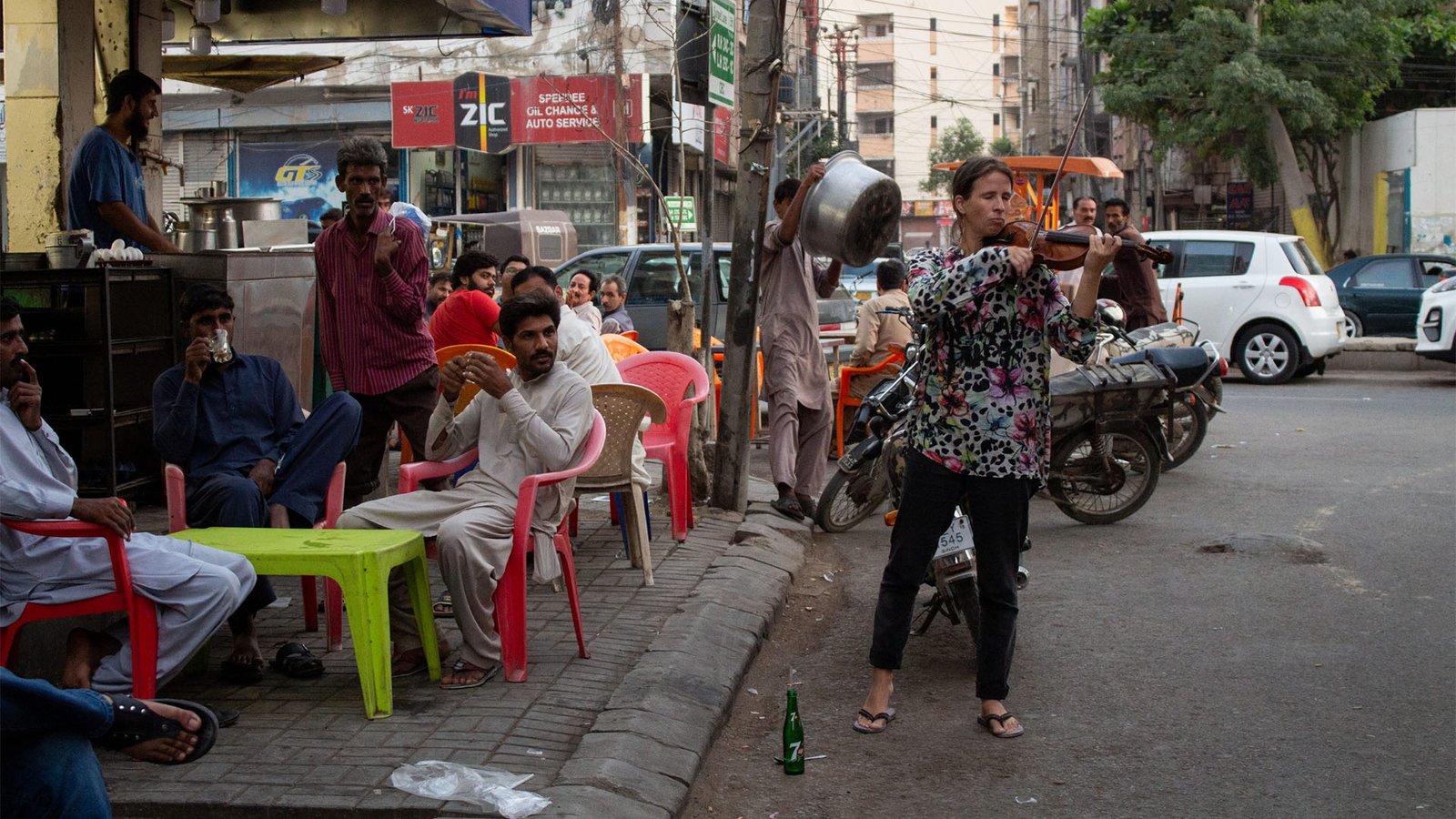 A performance piece revived my interest in violin improvisation in city streets. In particular, a trip to Paris in the late 1990s in which I loved to perform and touch people with my music in Montmartre and the Centre Pompidou prompted me to wonder how Karachiites and their lively street culture and Chaiwallas across the city would respond to a spontaneous – female, white – street musician. A video documents these encounters as the public spaces were briefly transformed by a musical intervention calling attention to a shared experience, and – possibly – communal joy.