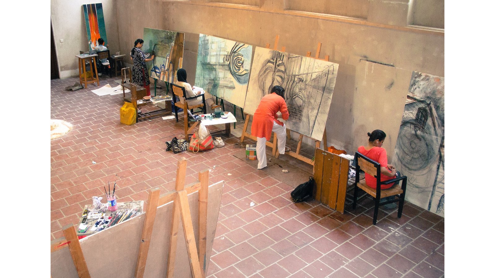 During her time with Vasl, Syed also tutored students in the department of Fine Art at the Indus Valley School of Art and Architecture as an correlated part of the single artists residency. Syed encouraged students to investigate complex issues of emotional and physical spaces, in varied formats ranging from two dimensional pieces to large installations. The young artists also researched and studied a range of art from early Greek mythological representation to Surrealist dreamscapes and contemporary figurative art in order to situate their own art making in a historical context.
