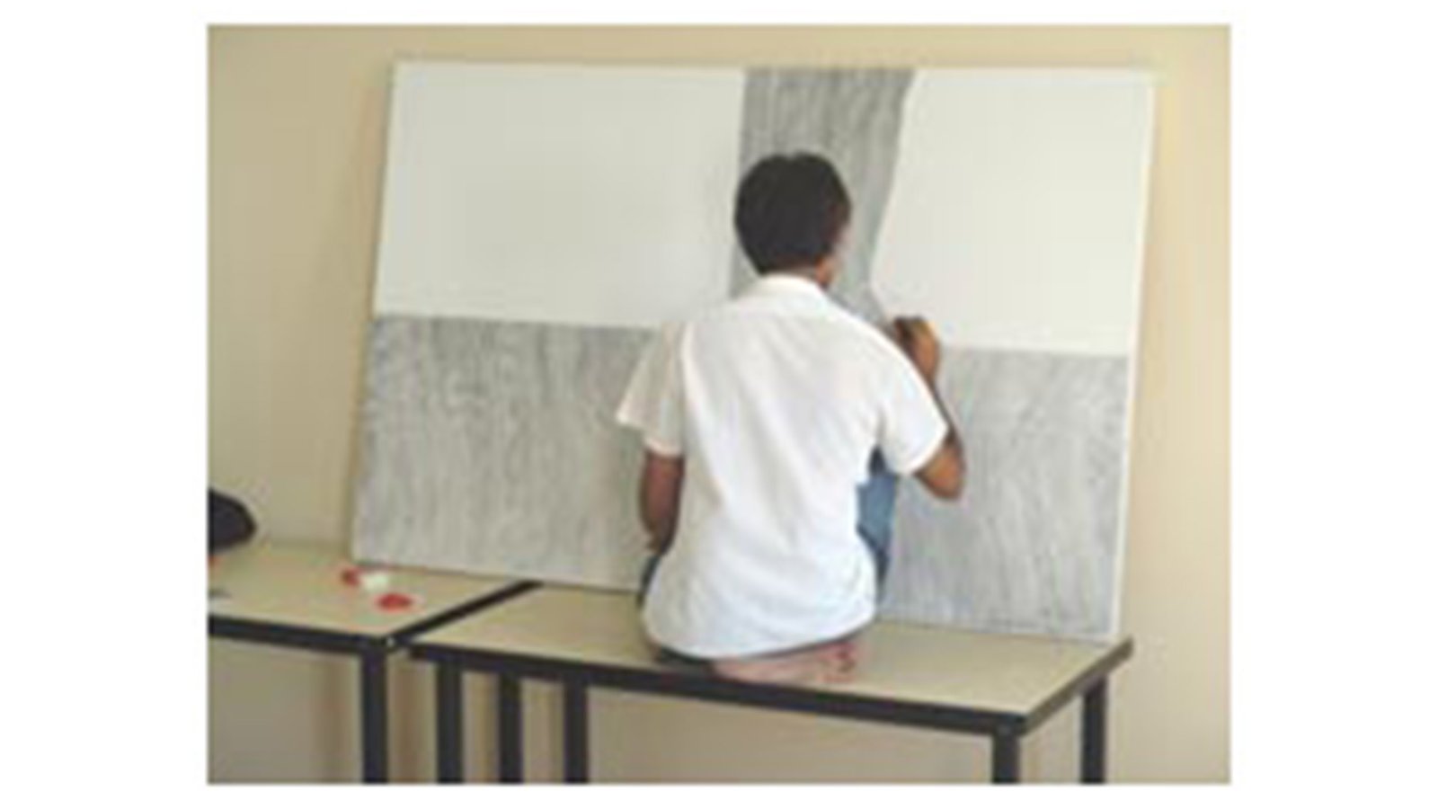 The artists came from various backgrounds and had graduated from different art universities across Pakistan, enabling each to bring his/her own discipline of art practice and sensibility towards the residency. As part of the educational outreach component of the residency, the artists conducted a 2 day workshop at two The Citizens Foundation (TCF) Schools in Karachi. The informal lectures and activities were designed to introduce the students with a basic idea of what it meant to be an artist in a Pakistani society. The artists asks the students for their interpretation of the words ‘art’, ‘creativity’ and ‘fun’ which lead to a mural and a story-based exercise. The mural consisted of each student working from a given reference on his or her individual boards to be put together at the end creating a collaborative image.