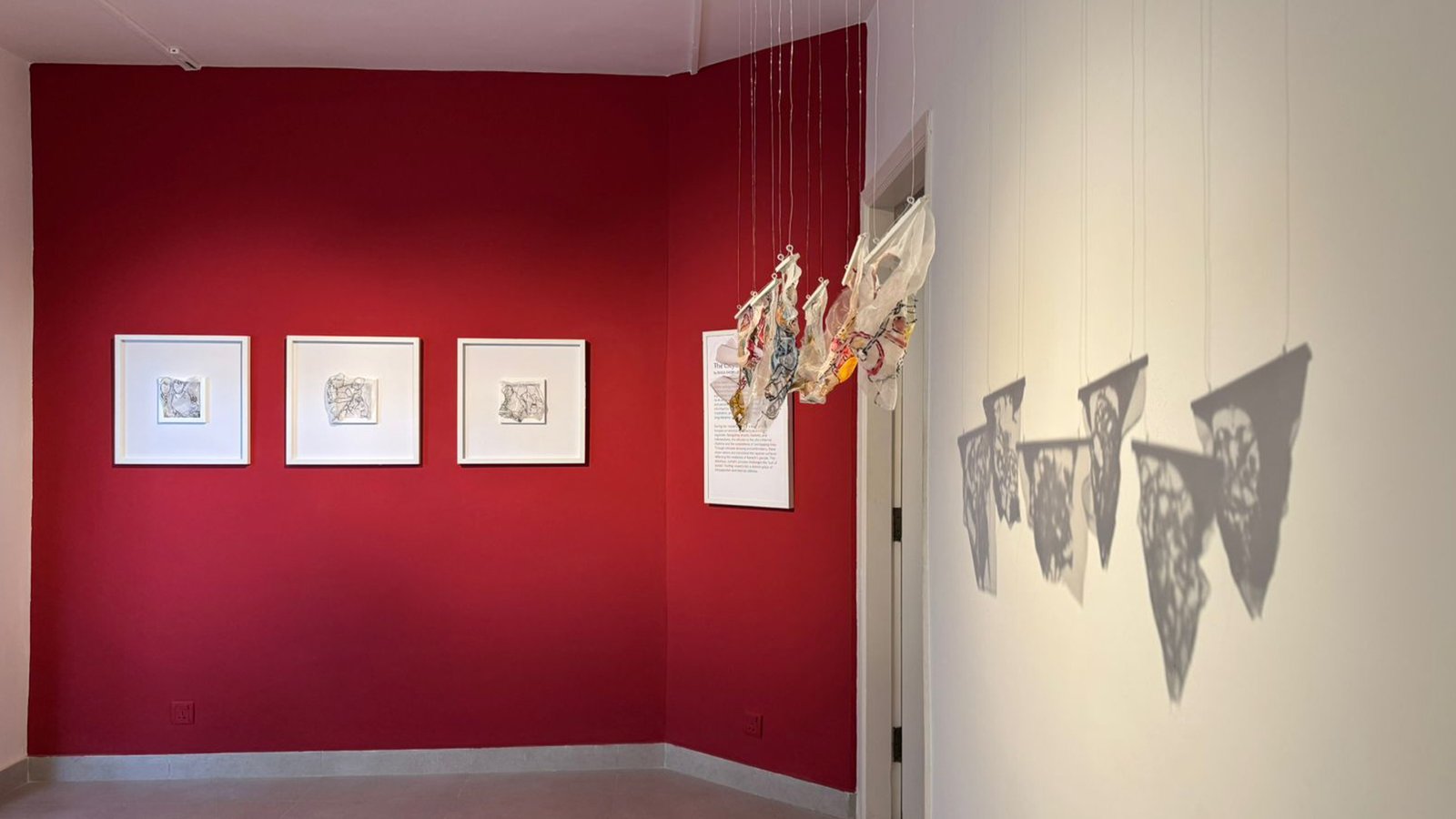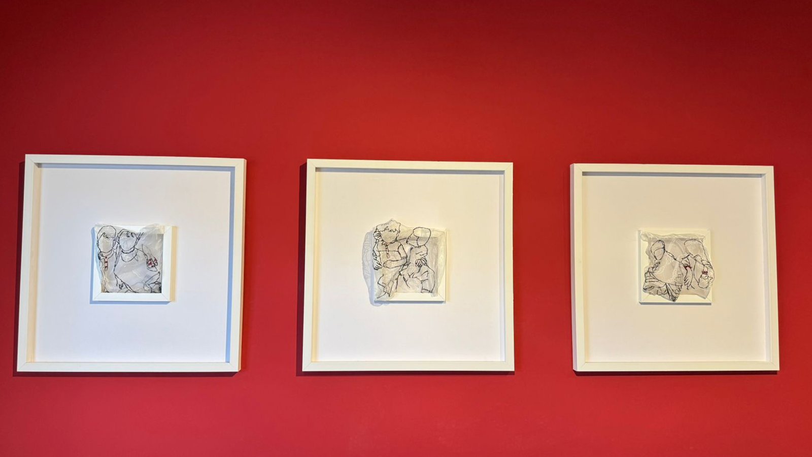Rooted in her Eastern heritage, Sufi literature, and experience as a yoga teacher, Shiza’s process is an extension of her daily practices of presence. She creates through intuition, seeking a “flow state” that mirrors the rhythm of long-distance running and the stillness of meditation. Through intricate drawing and embroidery, she repeats specific words in her mother tongue, Urdu, transforming the act of making into a laborious, meditative investigation of somatic awareness.