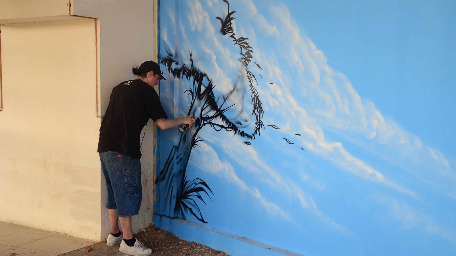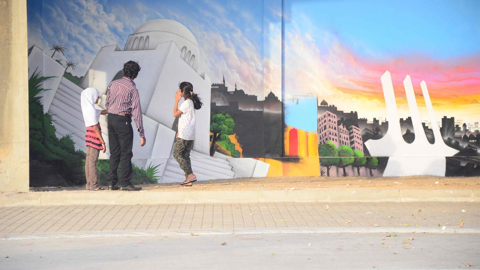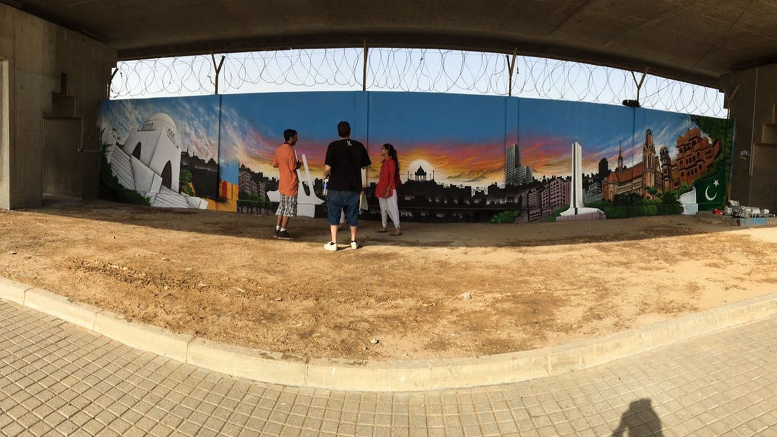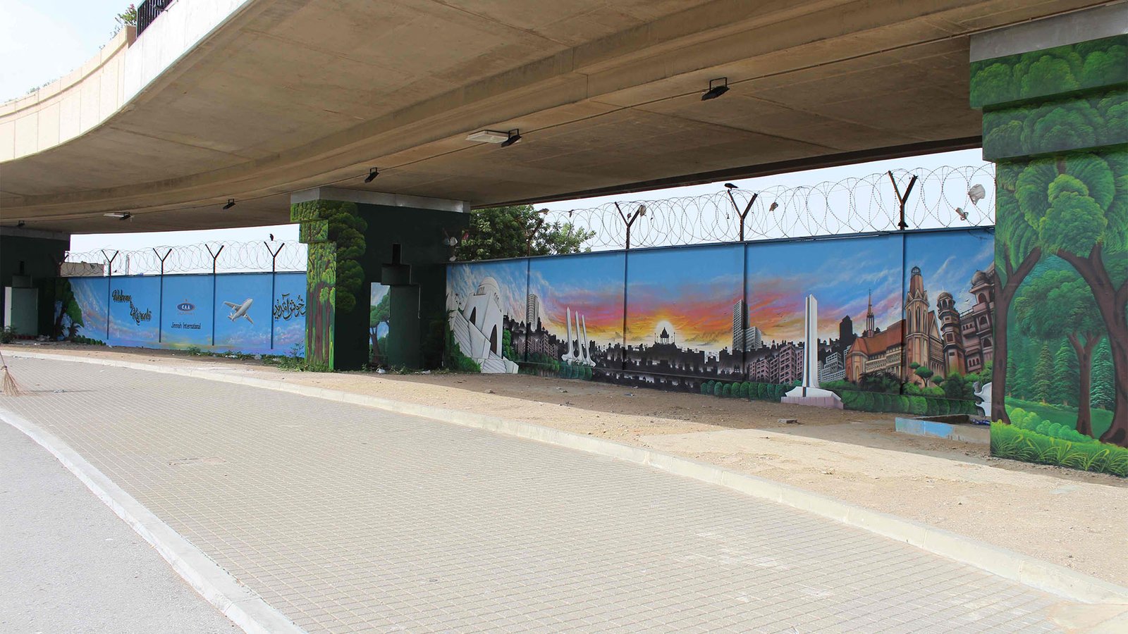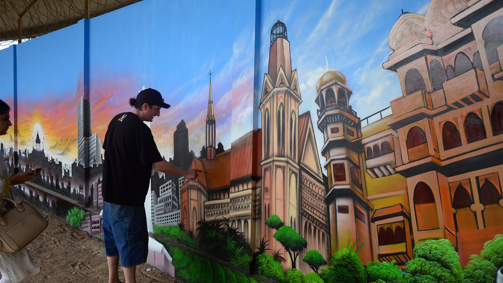 Graffiti artist Sebastian Schmidt is one of the first visiting artists in Pakistan to introduce professional graffiti art to the local art scene. Hosted by the Goethe-Institut, Pakistan & Vasl Artists’ Collective, Schmidt executed a 160 square meter mural at the Jinnah International Airport assisted by PhoolJee and his team of truck- artists, during his three week long residency. Schimdt created a unique composition of iconic structures in Karachi, both old and new. Utilizing his detailed spray painting technique and combining it with traditional oil and enamel painting from the truck-artists, Schmidt’s mural titled ‘Welcome to Karachi’ was a visual testament to the merging of styles. This collaboration resulted in an interesting exchange of culture and techniques despite language barriers. Schmidt’s mural was revealed to the public in an open day exhibition at the airport where he spray painted ‘Welcome to Karachi’ onto the walls.