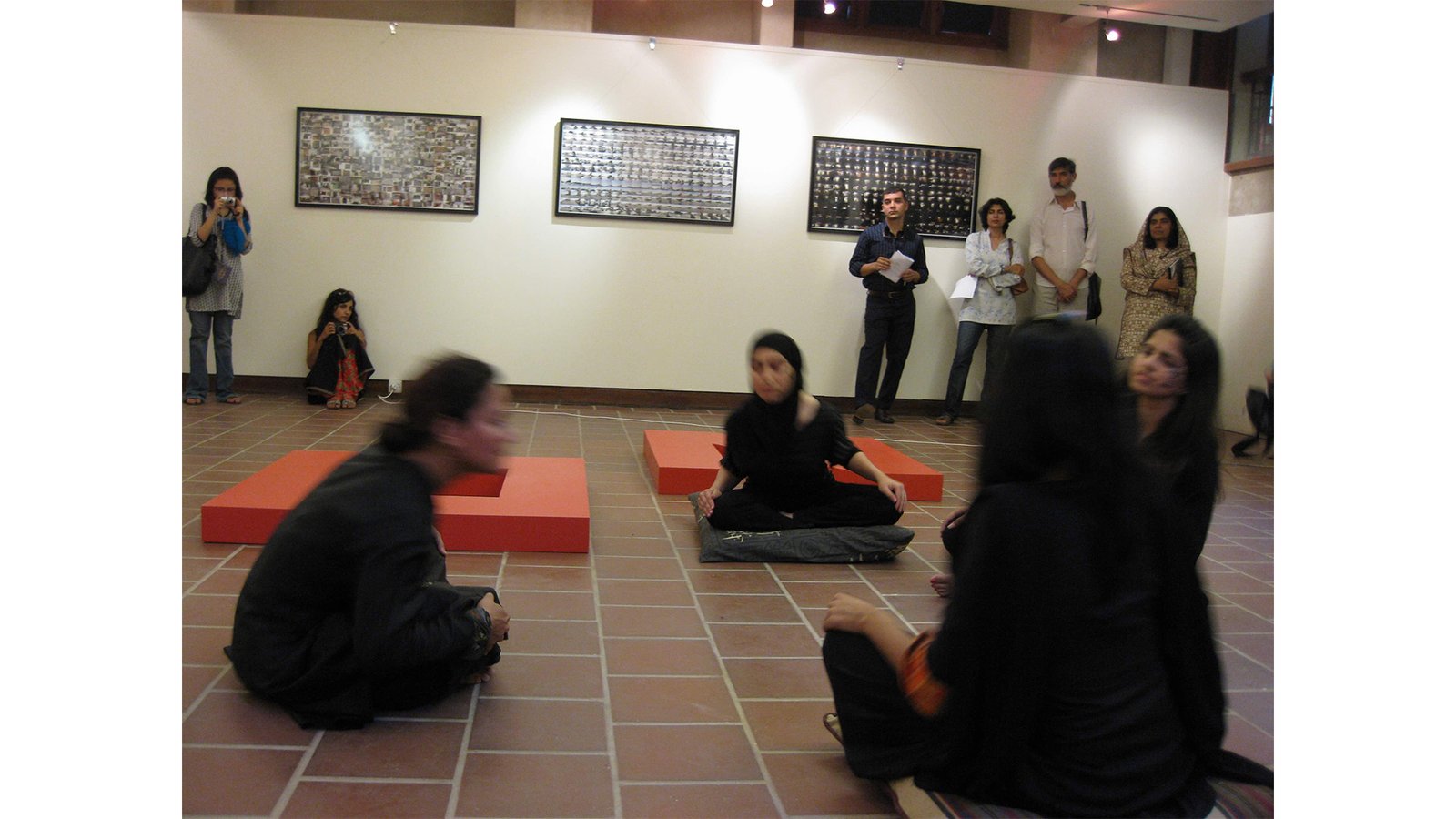 Monali Meher’s performance works followed a steady quiet pace and continued for long periods of time. The passage of time is as important as the message in her work. ‘I conclude my performance when I feel I have reached the state of mind in which I have found what I set out to look for’.